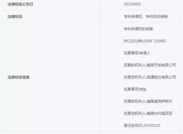 沒想到這件專利最早是來自帕姆(Palm)公司。這里面有什么故事嗎?原來,Palm品牌在 2010 年被惠普公司收購,Palm最出名的產品就是PDA和web OS智能手機。在惠普收購 Palm 之后,計劃把web OS操作系統帶到臺式機上,并向其他電腦制造商授予系統使用權,但最后,由于談判出現了一些問題,2015年惠普決定放棄了該系統,并將 Palm 拆售給了多家公司,包括高通擁有的web OS專利、LG獲得web OS智能電視授權、TCL 擁有Palm品牌。由此,我們不難理解,這件專利是怎么流轉到高通名下的。