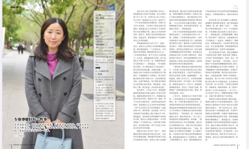 《上海知識(shí)產(chǎn)權(quán)》50期:在梁海蓮看來,及時(shí)更新知識(shí)儲(chǔ)備,不斷提高執(zhí)業(yè)能力;伴隨企業(yè)的需求不斷變化,多予以關(guān)注;這都是提高工作品質(zhì)的方法。但更重要的,是始終能踏實(shí)做好每一件事。