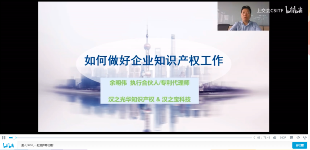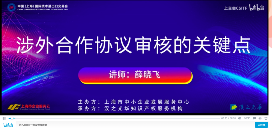 漢之光華受邀在上交會線上直播平臺開展知識產(chǎn)權(quán)系列分享培訓(xùn),由上海市中小企業(yè)發(fā)展服務(wù)中心主辦,漢之光華知識產(chǎn)權(quán)服務(wù)機構(gòu)承辦,分別做了《中國專利加快審查解讀》、《如何做好企業(yè)知識產(chǎn)權(quán)工作》、《涉外合作協(xié)議審核的關(guān)鍵點》、《案例說明企業(yè)如何進行專利商標糾紛維權(quán)》4場精彩的線上課程。