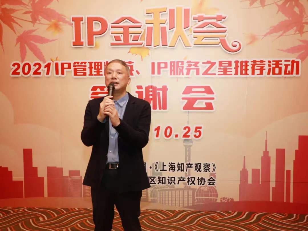 10月26日晚,由上海知識產(chǎn)權(quán)園 《上海知產(chǎn)觀察》、上海市浦東新區(qū)知識產(chǎn)權(quán)協(xié)會聯(lián)合主辦的IP金秋薈 ——2021IP管理精英、IP服務(wù)之星推薦活動答謝會在浦東舉辦。知識產(chǎn)權(quán)界的諸多專家、學(xué)者,服務(wù)機(jī)構(gòu)和企業(yè)管理的知識產(chǎn)權(quán)工作者匯聚一堂。