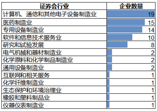 其中,排名TOP5的行業(yè)主要集中在計(jì)算機(jī)通信和電子設(shè)備制造(25%)、醫(yī)藥制造(20%)、專用設(shè)備制造(18%)、軟件信息技術(shù)服務(wù)(13%)和研究試驗(yàn)類企業(yè)(10%)。