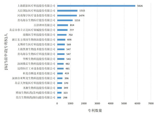 榜單顯示,聯影醫療、天臣國際、翔宇醫療、海爾生物、百濟神州五家企業依次位居專利申請量排名榜前五。