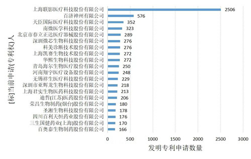 1、生物醫藥領域科創板注冊生效企業專利申請量排名前20位