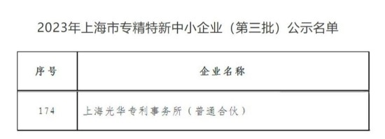 近日,上海市經(jīng)濟(jì)和信息化委員會(huì)公布了2023年上海市專精特新中小企業(yè)名單(第三批),光華所成功入選。