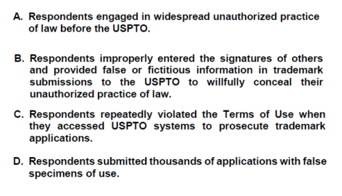 A.被申請人在美國專利商標局廣泛從事未經授權的執業活動