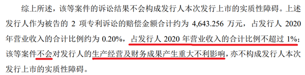 阿特斯在回復中表示,未決的3起專利侵權糾紛案件被最終認定為專利侵權的風險較低;即使相關專利訴訟敗訴,發行人需支付的賠償金額占發行人2020年營業收入的合計比例約為0.22%。因此,該等專利訴訟案件的訴訟結果不會對發行人相關產品的生產銷售、經營及財務成果產生重大不利影響,亦不構成發行人本次發行上市的實質性障礙。上述答復為其順利過會奠定了基礎。