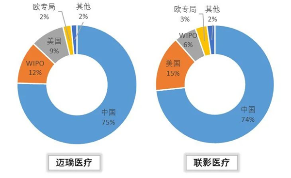 結(jié)合兩家公司目前的海外專利布局情況,邁瑞醫(yī)療、聯(lián)影醫(yī)療的研發(fā)創(chuàng)新技術(shù)在海外專利布局占比情況不相上下,其中,美國市場(chǎng)對(duì)聯(lián)影醫(yī)療較為重要,其美國的專利布局高達(dá)15%。