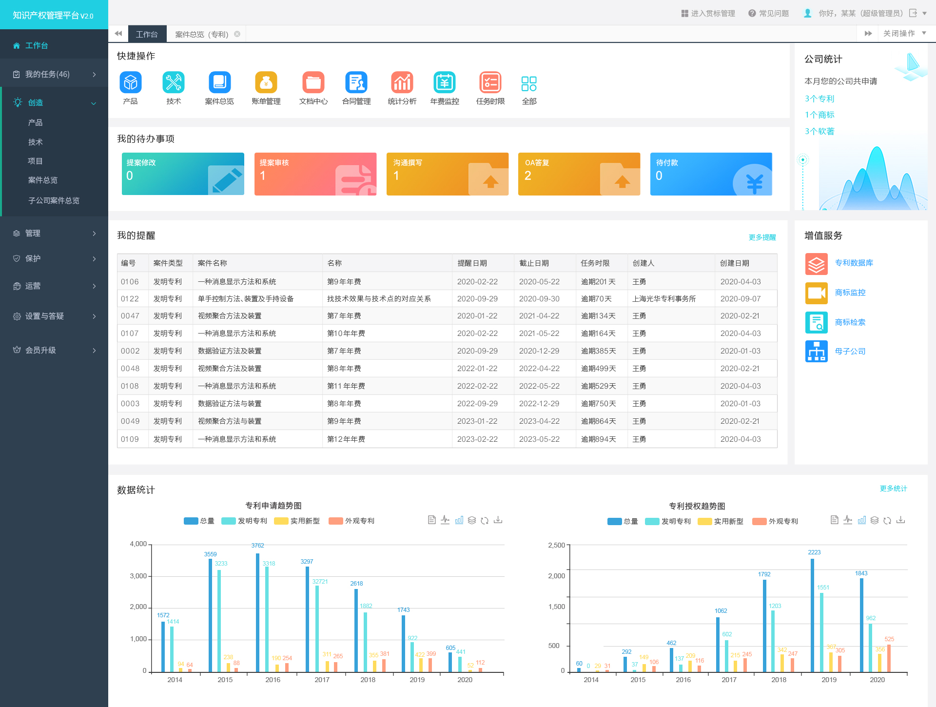 園區通過平臺服務可以對園區內企業的知識產權進行托管,企業可以自行管理自身知識產權案件流程、費用信息,園區也可以查看匯總多個園區企業的專利、商標、軟著案件信息,實時狀態等資料。從而實現將知識產權戰略、知識產權管理融入企業發展中,提高運用知識產權的能力,提升知識產權商業價值。中小微企業將通過平臺服務提升知識產權意識、形成知識產權競爭優勢,促進科技技術創新。